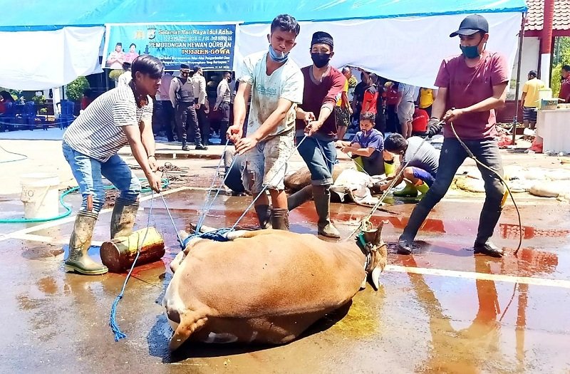 Sebanyak 4 (empat) petugas penyembelih hewan qurban dan 7 (tujuh) pekerja yang dikerahkan, mampu mengeksekusi 17 ekor hewan qurban di Polres Gowa yang disiapkan dalam rangka perayaan Idul Adha 1441 H yang jatuh pada Jumat (31/07/2020).