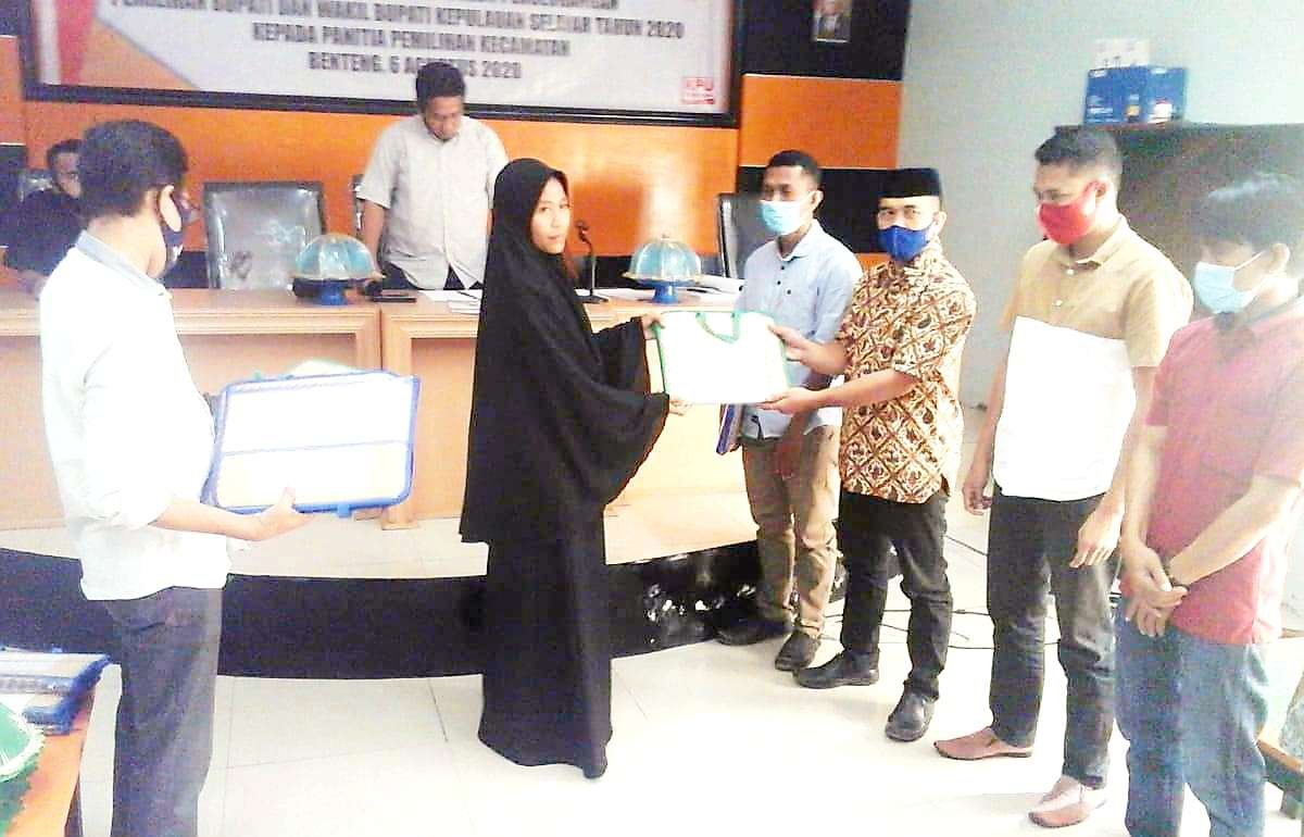 Berkas dukungan perbaikan bakal pasangan calon (bapaslon) perseorangan pemilihan calon Bupati dan Wakil Bupati Kepulauan Selayar tahun 2020 yang beberapa malam lalu telah ditetapkan secara resmi melalui rapat pleno terbuka hasil verifikasi administrasi, Kamis (06/08/2020) siang diserahkan secara resmi oleh Komisi Pemilihan Umum (KPU) Kabupaten Kepulauan Selayar kepada Panitia Pemilihan Kecamatan (PPK).