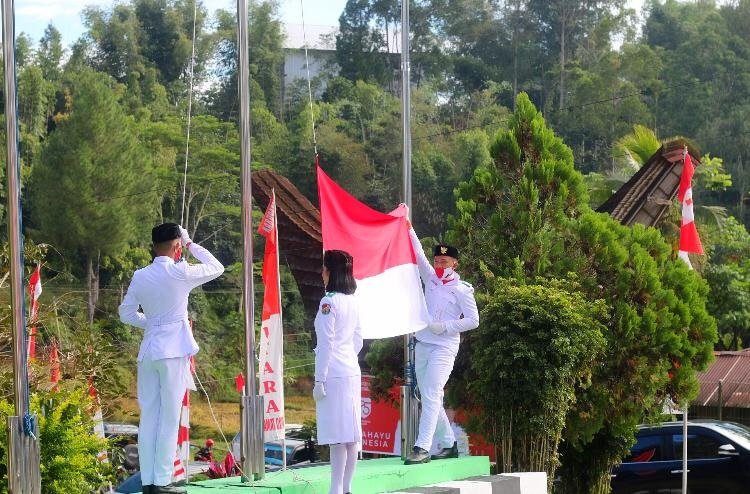 Bupati Kalatiku Paembonan dalam pidato sambutannya menyampaikan, " dalam situasi kegembiraan di HUT RI cukup luar biasa walaupun negeri kita dalam situasi membahayakan dengan virus Corona Diseases -19, namun tetap kita dapat mengikuti upacara penghormatan, penghargaan kita kepada bangsa dan negara dan terutama pada jasa para pahlawan yang telah gugur dalam perjuangan mempertahankan bangsa RI.