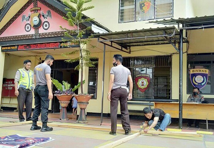 Kapolres Toraja Utara AKBP Yudha Wirajati memerintahkan jajarannya di tiap - tiap Polsek yang ada dalam wilayah Polres Toraja Utara agar memasang spanduk KAPOLRI dan PANGLIMA TNI yang bertuliskan pendisiplinan masyarakat agar mematuhi protokol kesehatan dengan wajib menggunakan masker di wilayah hukum Polres Toraja Utara, Senin (31/08/20).