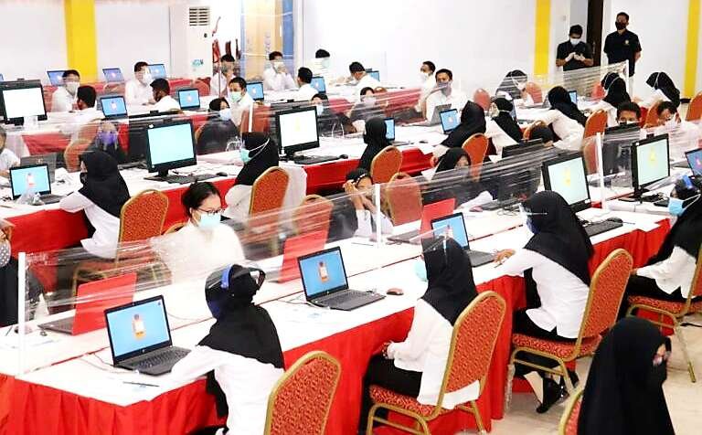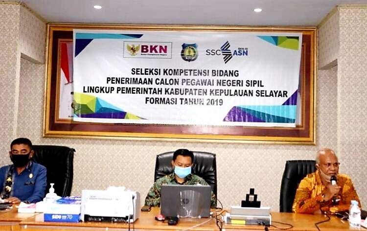 Bupati Kepulauan Selayar, H. Muh. Basli Ali memantau hari pertama ujian Seleksi Kompetensi Bidang (SKB) penerimaan Calon Pegawai Negeri Sipil (CPNS) lingkup Pemerintah Kabupaten Kepulauan Selayar di Ruang Pola Kantor Bupati, Sabtu (12/09/2020).