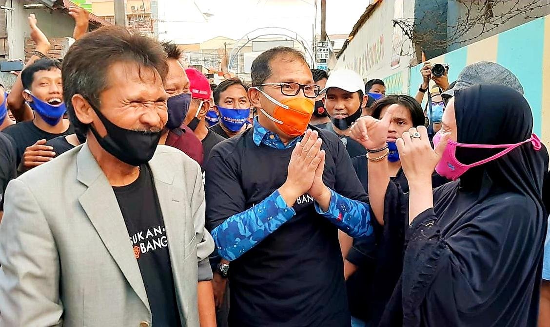 Usai dipakaikan baju kaos oleh Pendiri Komunitas PLB Darmansyah Muin, SH, Calon Walikota Makassar periode 2021-2025 berjalan kaki menuju lokasi acara di persimpangan 4 (empat) penjuru lorong. Saat berjalan kaki dengan iringan tabuhan gendang Tunrung Pakanjara, Danny Pomanto tak henti-hentinya mampir menyalami sejumlah warga berusia lanjut yang berdiri di tepi jalan depan rumah mereka.