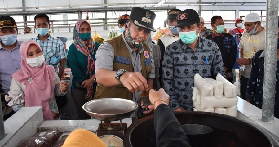 Pjs Bupati Luwu Utara Iqbal Suaeb bersama Kepala Dinas P2KUKM Kasrum Patawari, Minggu (18/10/2020), meresmikan Pasar Rakyat Sabbang, yang dibangun melalui Dana Tugas Pembantuan Tahun Anggaran 2017 oleh Kementerian Perdagangan.