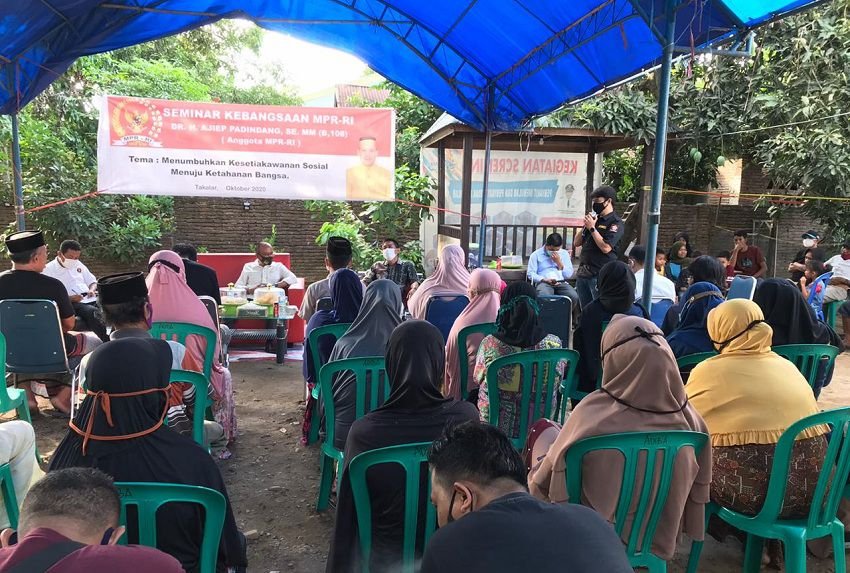 Anggota MPR RI, Dr. H. Ajiep Padindang,SE,MM, melaksanakan Seminar Kebangsaan dengan tema "Menumbuhkan Kesetiakawanan Sosial Menuju Ketahanan Nasional", dengan segmen pekerja sosial dan tokoh masyarakat, yang dilaksanakan di Rumah Makan Raja Desa Jl. Jenderal Sudirman Takalar, dan di Kelurahan Manongkoki Kecamatan Polobangkeng Utara Kabupaten Takalar (30/10/2020) dengan standar protokol kesehatan.