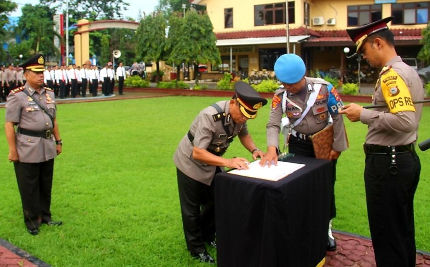 “Selamat datang dan bergabung pejabat baru. Silahkan menyesuaikan diri pada jabatan baru saudara, dengan bekal ilmu dan pengetahuan yang saudara miliki. Saya harapa saudara mampu mengembang amanah jabatan yang diberikan. Silahkan berbuat untuk fokus pada pengamanan pileg dan pilpres 20189," tandas AKBP Richard.