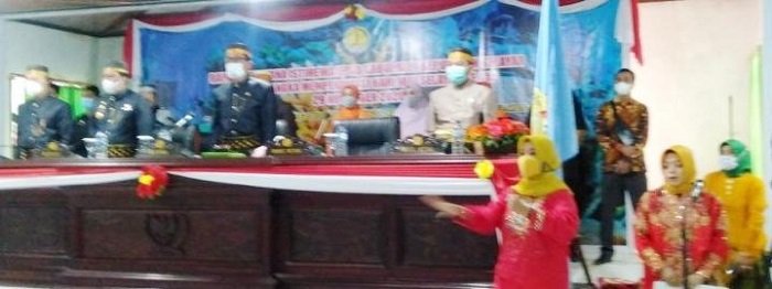 Tampak pelaksanaan acara di ruang rapat paripurna DPRD Selayar yang diselenggarakan secara sederhana itu terkait masih dalam suasana pandemi Covid–19 sehingga yang hadir hanya kurang lebih 50 orang.
