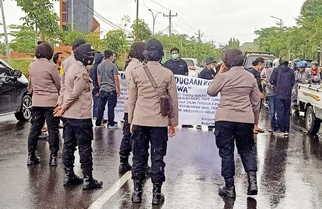 Sekitar pukul 14.30 Wita peserta aksi mulai menyampaikan orasi di depan kantor Dinas PUPR Kabupaten Gowa dan mendapat pengawalan dari personel Polki maupun Polwan Polres Gowa.