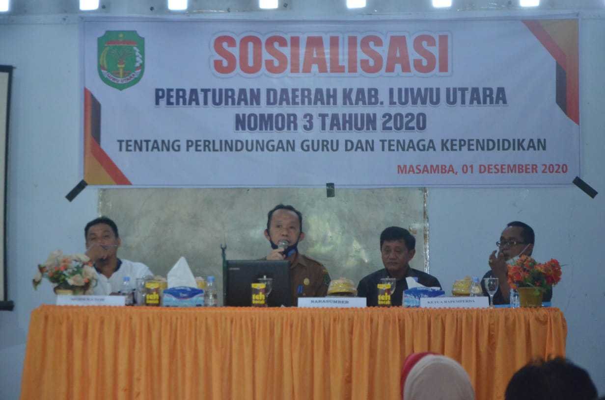 Setelah DPRD Luwu Utara (Lutra) mengesahkan Rancangan Peraturan Daerah (Ranperda) inisiatif DPRD Kabupaten Luwu Utara, tentang perlindungan guru dan tenaga kependidikan, perlindungan masyarakat hukum adat Luwu Utara (Lutra) menjadi Peraturan Daerah (Perda), dilanjutkan dengan kegiatan sosialisasi.