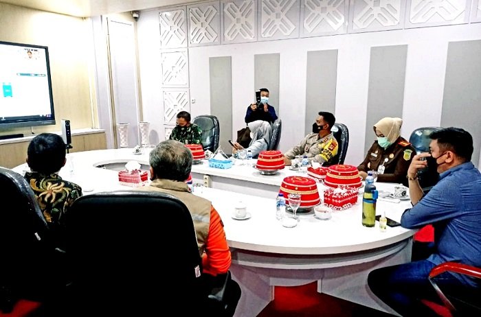 Kapolres Gowa AKBP Budi Susanto, SIK mengikuti Rapat Koordinasi (Rakor) Tingkat Menteri di Peace Room A'Kio, Kantor Bupati Gowa, Minggu (31/01/2021) malam kemarin.