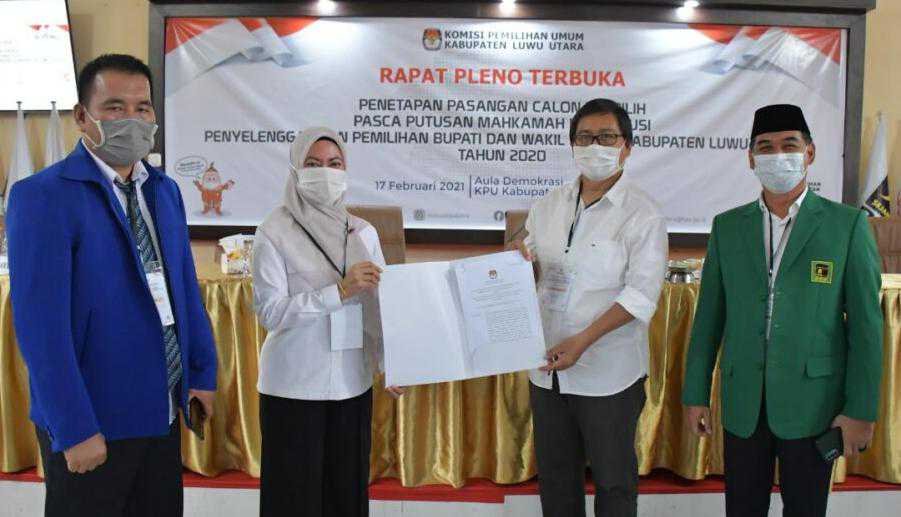 Sebelumnya, KPU Lutra telah merampungkan pleno rekapitulasi penghitungan suara Pilkada Lutra. Pasangan calon bupati-wakil bupati (cabup-cawabup), Indah Putri Indriani-Suaib Mansur unggul dengan perolehan suara 80.078 atau 45,13 persen. Sementara pasangan Muh Thahar Rum-Rahmat Laguni meraup 49.819 suara atau 28,08 persen serta pasangan Arsyad Kasmar-Andi Sukma peroleh 47.515 suara atau 26,78 persen. (yus)