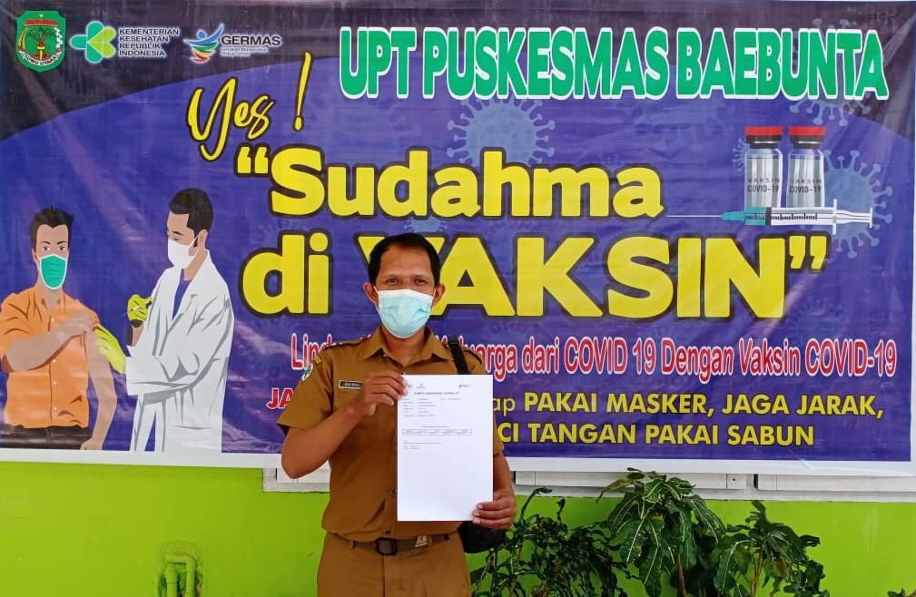Pemberian Vaksin Covid-19 kepada tenaga kesehatan di Puskesmas Baebunta Kabupaten Luwu Utara sudah 69 orang untuk penyuntikan pertama dan 9 orang untuk penyuntikan kedua.