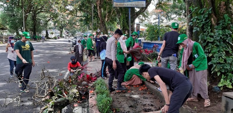 Kapolsek Tinggimoncong Polres Gowa IPTU Hasan Fadhlyh SH bersama pemerintah kecamatan Tinggimoncong dan Mahasiswa KKN tanam pendistrian Malino di jalan protokol Sultan Hasanuddin kelurahan Malino Kecamatan Tinggimoncong,Sabtu (6/3/2021).