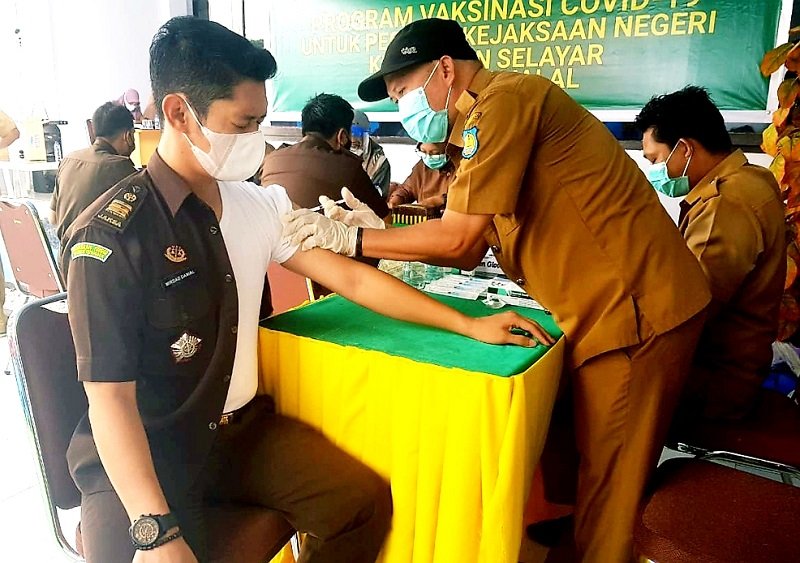 Pelaksanaan vaksinasi diawali oleh Kepala Kejaksaan Negeri (Kajari) Selayar, Ady Nuryadin Sucipto, disusul Kepala Seksi Kejari, Jaksa, serta tenaga tata usaha dan pengurus Adhyaksa Dharma Karini Kejari Selayar.