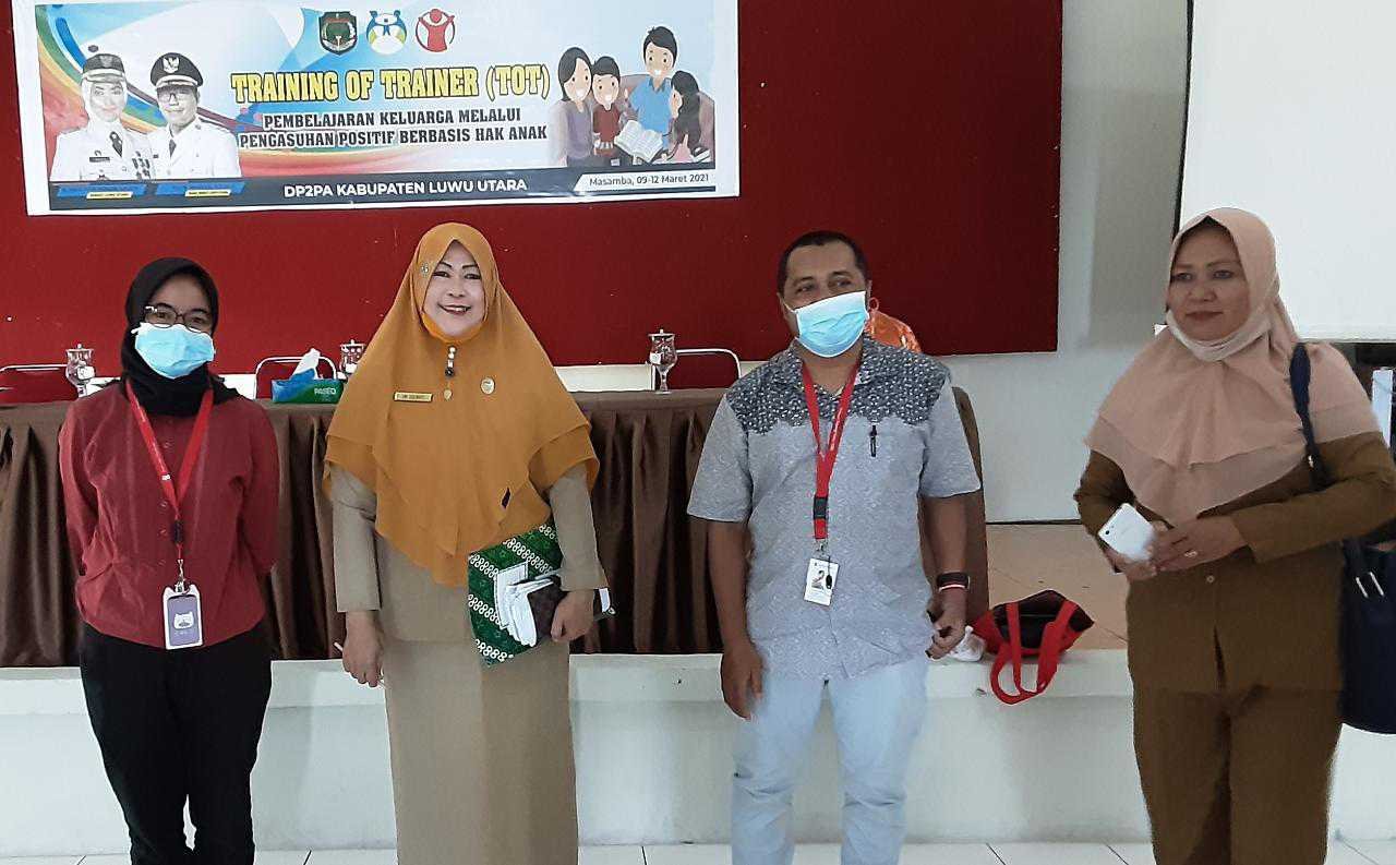 Kegiatan TOT Pengasuhan Positif Berbasis Hak Anak dan dibuka langsung Bupati Luwu Utara Indah Putri Indriani, dengan peserta sebanyak 30 orang fasilitator yang terdiri dari kader Posyandu, Kader Desa Siaga dan Kader PKK, dan bekerjasama dengan Yayasan Save The Children.