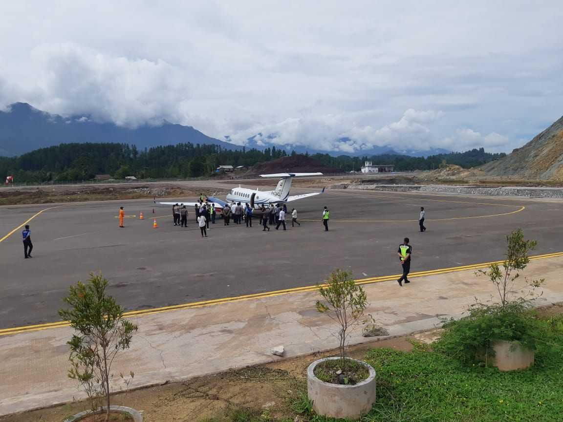 Uji coba runway atau landasan pacu Bandara Buntu Kunik di Kecamatan Mengkendek, Tana Toraja, Rabu 12 Agustus 2020. Kala itu sekitar pukul 10.30 Wita, pesawat Kalibrasi Hawker 900 XP milik Direktorat Jenderal Perhubungan Udara Kementerian Perhubungan RI, sukses mendarat.