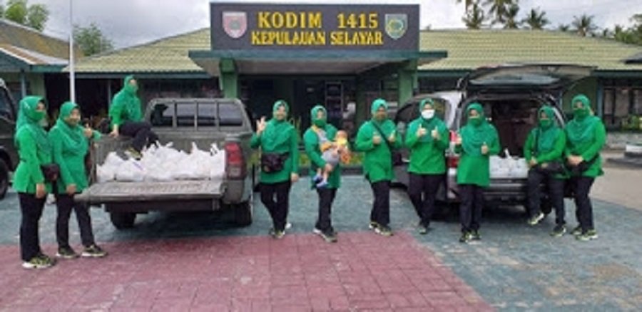 Aksi sosial oleh pengurus Persit KCK Cabang XXIX Kodim 1415 Selayar ini dilaksanakan dengan tetap memperhatikan protokol kesehatan. (Ucok Haidir)