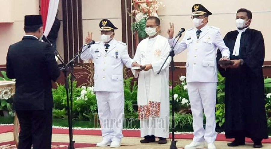 Bupati dan Wakil Bupati Toraja Utara (Torut) Sulawesi Selatan (Sulsel) terpilih pada pemilihan kepala daerah serentak tahun 2020, Yohanis Bassang, SE, M.Si-Frederik Victor Palimbong, ST resmi dilantik hari ini dan diambil sumpahnya, Senin, 26 April 2021.