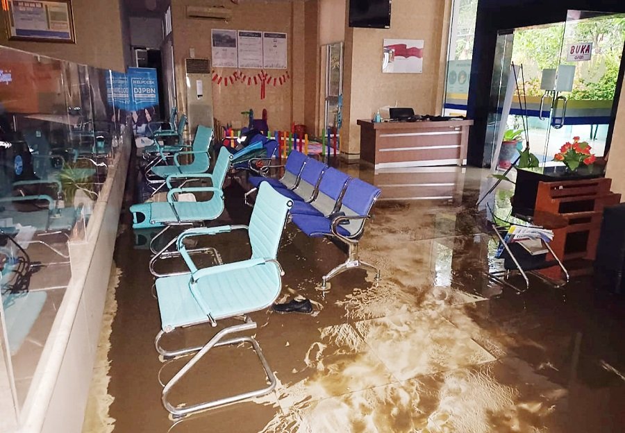 "Banjir pagi tadi sungguh tidak disangka, hujan deras hanya semalam sudah mangakibatkan banjir sampai masuk ke ruang kantor setinggi 40 cm. Tahun lalu terjadi banjir akibat hujan lebih dari satu hari, tapi itu pun tidak sampai masuk ruang layanan," jelasnya.