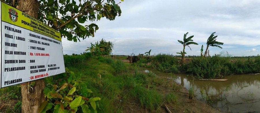 Tak dapat dipungkiri proyek yang sementara dalam pelaksanaan yang dianggarkan tahun 2021 oleh satuan kerja Dinas PUPR dan Pertanahan Kab.Wajo, Bidang Sumber Daya Air, yaitu Pekerjaan Rehabilitasi Jaringan Irigasi Permukaan (DI) ruas /lokasi : Lamessi Kecamatan Majauleng nilai kontrak sebesar Rp.1.678.904.000,-- sumber dana DAK, yang dikerjakan oleh CV.Benteng & Co.