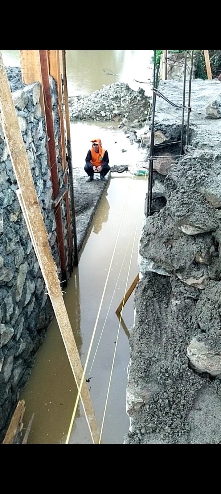 Dan dilokasi ditemukan besi beton yang diperkirakan ukurannya Ø 8 mm dan Ø 5 mm, tim pun tidak mempertanyakan ini besi digunakan untuk apa, karena sesuai standar untuk besi tulangan beton pada bangunan kontruksi air minimal besi Ø 12 mm dan besi behelnya paling rendah menggunakan ukuran Ø 6 mm.