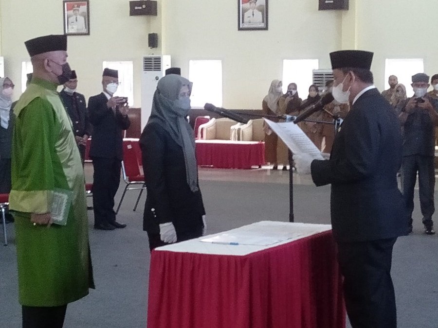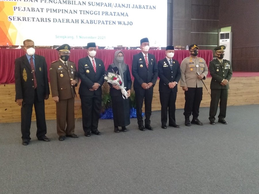 Bupati Wajo, Amran Mahmud, resmi melantik Armayani sebagai Sekretaris Daerah (Sekda) Kabupaten Wajo. Pengambilan sumpah/janji jabatan berlangsung di Ruang Pola Kantor Bupati Wajo, Senin (1/11/2021).