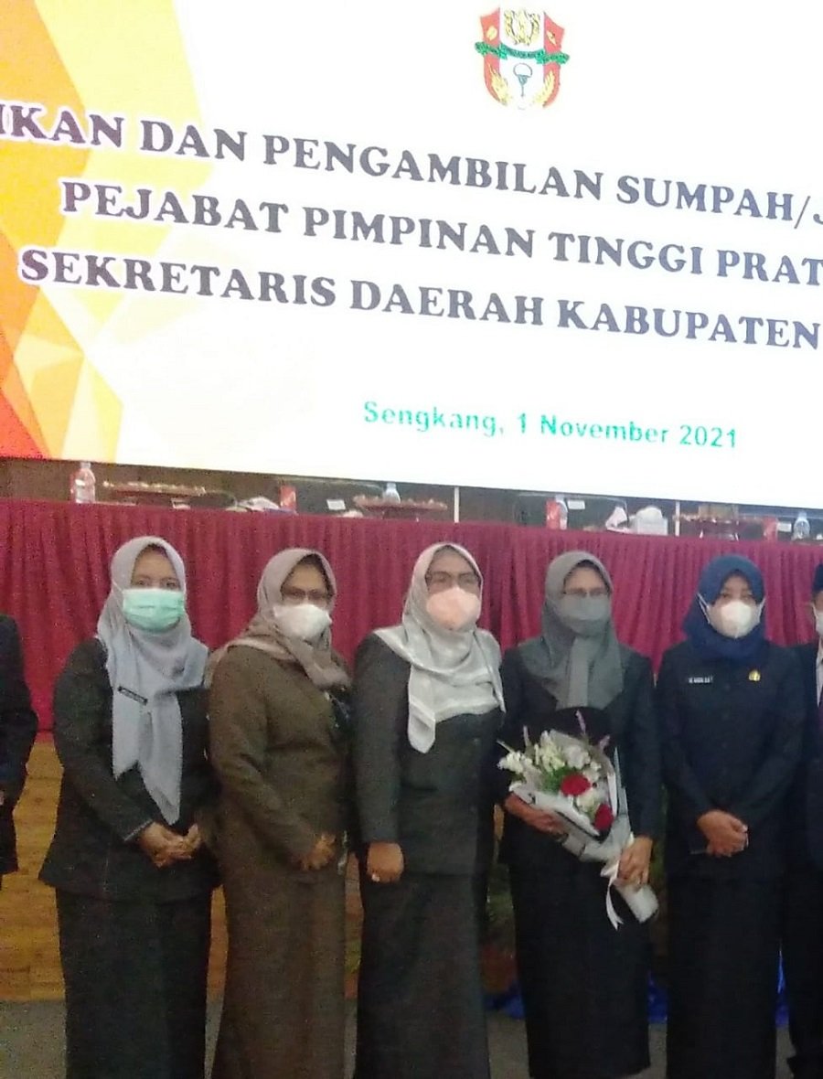 Foto bersama seusai pelantikan Sekertaris Daerah Kab wajo Ibu Armayani,dr Army Kadis Kesehatan, dr Ela Direktur Rumah Sakit Umum Daerah Lamaddukeleng Wajo, Dahniar Gafar Kadis Pariwisata Kab Wajo
