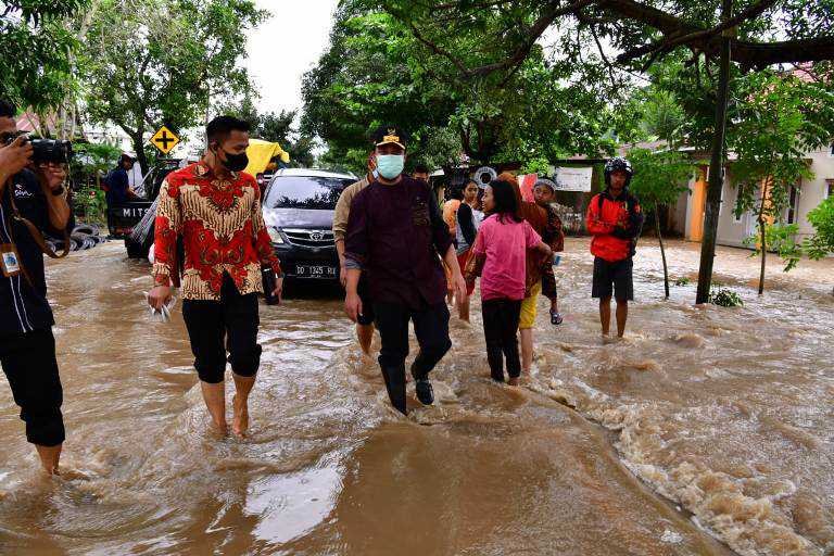 Didampingi Bupati Jeneponto, Iksan Iskandar, mereka meninjau salah satu titik banjir di Jeneponto. Tepatnya di depan Pasar Karisa, Jalan Pahlawan, Kelurahan Empoang Selatan, Kecamatan Binamu, Kabupaten Jeneponto.
