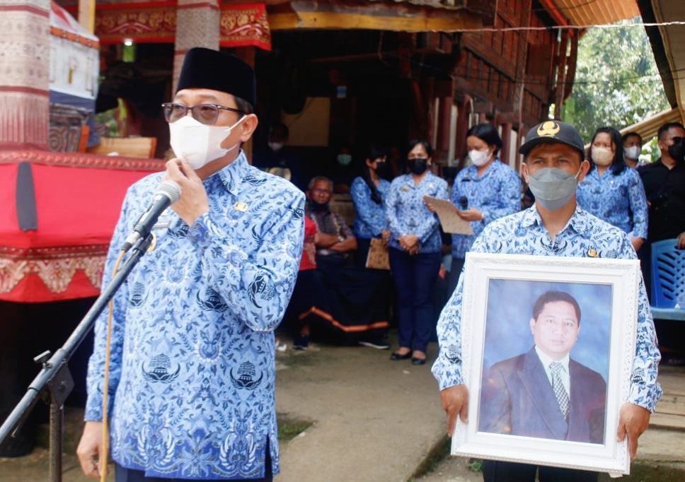 Wakil Bupati Toraja Utara Frederik V.Palimbong pimpin upacara Pelepasan Jenazah mantan kepala BAPPEDA Toraja Utara Almarhum Ir. Aris Mantong, M.Si di halaman tongkonan Balla Kel.Tikala Kec. Tikala dengan berlangsung hikmad dan sesuai protokol kesehatan.