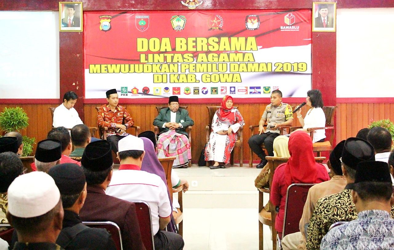 Mengawali kegiatan doa bersama lintas agama untuk keamanan dan kelancaran penyelenggaraan Pemilu 2019, pada Jumat (08/03/2019) pagi tadi jajaran Polres Gowa menggelar diskusi panel menampilkan 5 (lima) narasumber yang membahas seputar Pemilu 2019, yang dipimpin langsung oleh Kapolres Gowa AKBP Shinto Silitonga, SIK, MSi, yang juga sekaligus bertindak sebagai narasumber.