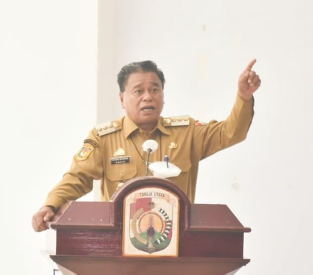 Bupati Toraja Utara Yohanis Bassang saat dikonfirmasi wartawan usai memimpin rapat Senin, 14/2/2022 di kantor gabungan dinas-dinas Marante langsung angkat bicara dan marah atas dugaan adanya salah satu staf khususnya meminta sejumlah uang dari Lurah yang beru telah dilantik.