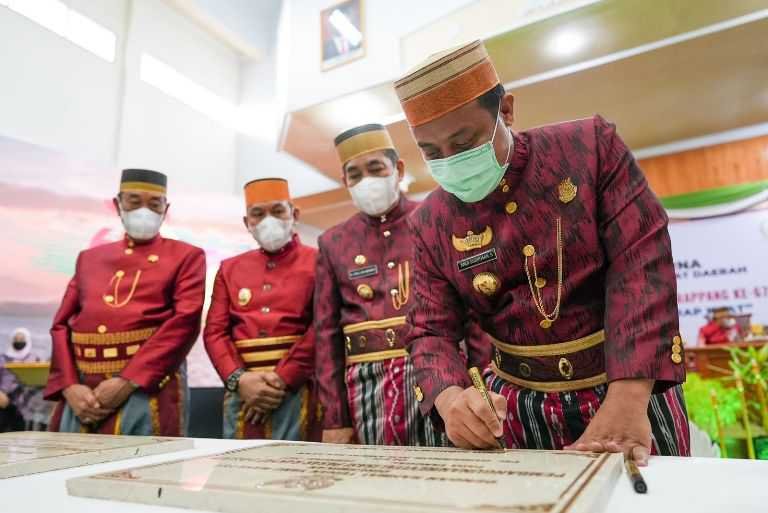 Di hari bersejarah bagi Sidrap ini Andi Sudirman Sulaiman meresmikan sejumlah proyek tahun 2021. Penyerahan piagam warisan tak benda Indonesia dari Menteri Pendidikan Indonesia ke Bupati Sidrap.