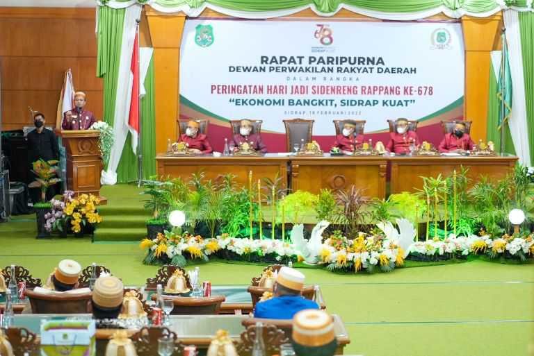 Plt Gubernur Sulsel, Andi Sudirman Sulaiman menyampaikan bantuan tersebut pada Rapat Paripurna DPRD dalam rangka 678 tahun Kabupaten Sidrap, Jumat (18/2/2022).