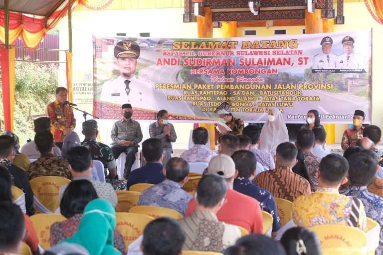 Pelaksana Tugas Gubernur Sulawesi Selatan, Andi Sudirman Sulaiman meresmikan pemanfaatan tiga ruas jalan di Kabupaten Toraja Utara, Minggu (20/2/22022).