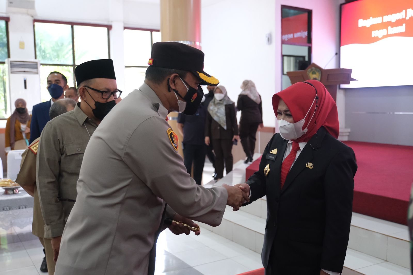 Kapolres Gowa AKBP Tri Goffarudin. P, SIK, MH, menghadiri Pelantikan Dra. Kamsina, MM, sebagai Pimpinan Tinggi Pratama Sekretaris Daerah Kabupaten Gowa di Baruga Karaeng Galesong Kantor Bupati Gowa, senin (07/06/22).