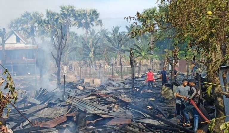 Dari musibah kebakaran itu, sebanyak 10 rumah terdampak. Diantaranya 8 unit rumah panggung rata dengan tanah dan 2 unit rumah sebagian terbakar, serta 3 unit sepeda motor juga terbakar.