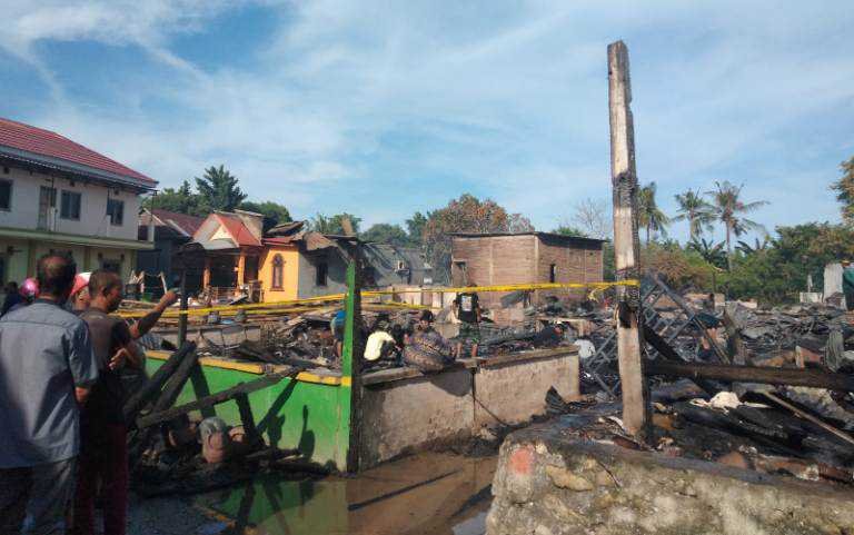 Hubungan arus pendek (korsleting) listrik menyebabkan 16 rumah warga terbakar dan terdampak pada 21 KK. (*)