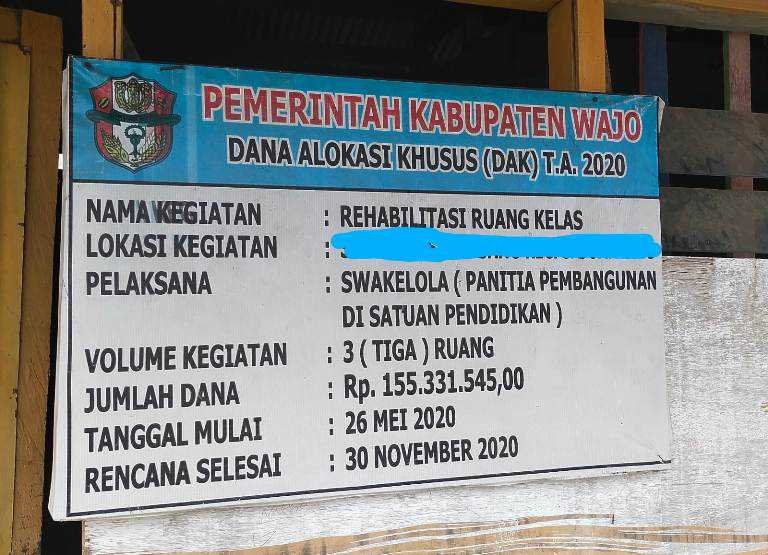Dari sesi wawancara itu, kepala sekolah menjelaskan bahwa rehabilitasi gedung tersebut pada tahun anggaran 2020 yang bersumber dari Dana Alokasi Khusus (DAK) sebesar Rp 80 juta lebih.