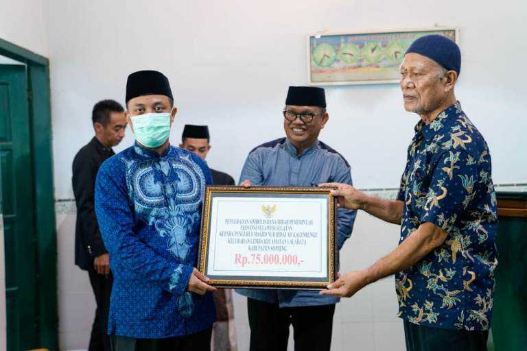 Selain itu, juga menyerahkan bantuan dana hibah sarana dan prasarana ibadah untuk Masjid Nurul Hidayah Kalenrunge, Kelurahan Lemba, Kecamatan Lalabata yang diserahkan kepada pengurus masjid.
