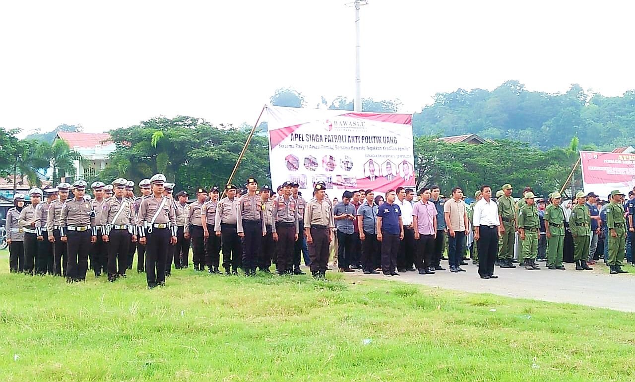 Hari kelima sebelum Paksanaan Pemilu, Badan Pengawas Pemilu (Bawaslu) Kabupaten Sinjai menggelar Apel Siaga Patroli Anti Politik Uang dan Apel 3 Pilar di Lapangan Sinjai Bersatu, Jumat (12/04/2019) pagi.