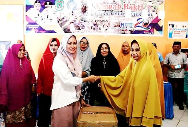 Pada kesempatan ini, Indah juga menyerahkan 11 speaker wireless kepada Badan Kontak Majelis Ta'lim (BKMT) dan Permata se-Kecamatan Tanalili. (yustus)