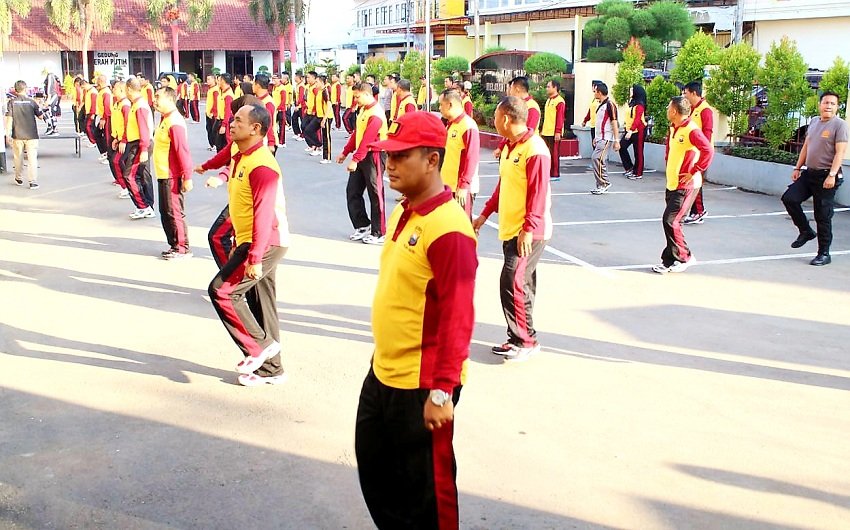 Nampak seluruh personil dan bhayangkari pun terlihat begitu antusias dan bersemangat mengikuti setiap gerakan senam yang diiringi dengan irama musik yang begitu energik. (*rm)