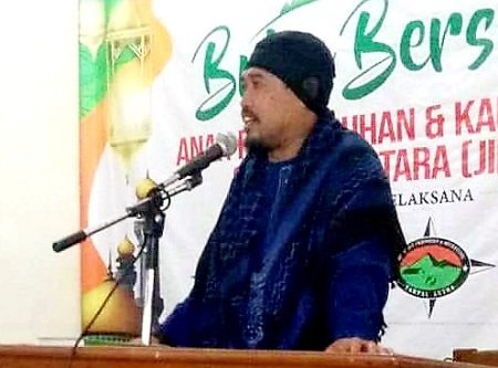 Masyarakat dan anak Panti Asuhan tengah menunggu waktu berbuka puasa sambil mendengarkan tausyiah.