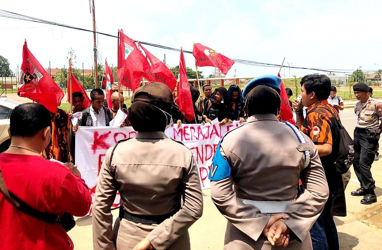 Sejumlah personil Polwan Polres Gowa turut dilibatkan sebagai Tim Negosiator dalam aksi unjuk rasa peringatan Hari Anti Korupsi di wilayah Hukum Polres Gowa, Senin (09/12/2019).
