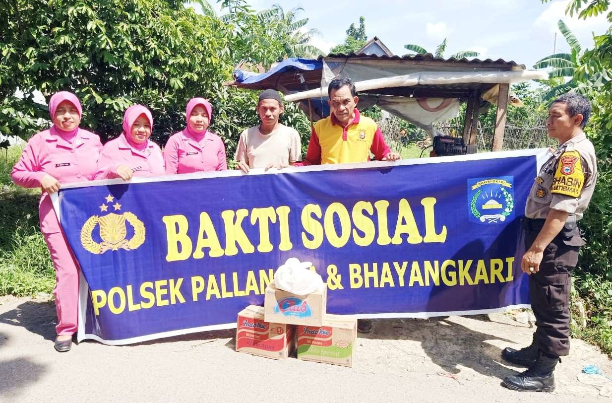 Waka Polsek Pallangga Iptu Sulaeman bersama Staf Bhayangkari Ranting Pallangga dan Bhabinkamtibmas memberikan bantuan sembako kepada seorang warga kurang mampu Sangkala Dg Ngalle, di Jln Dirgantara Lingkungan Kalegowa, Kelurahan Mangali, Kecamatan Pallangga, Kabupaten Gowa, Sabtu (18/01/2020).