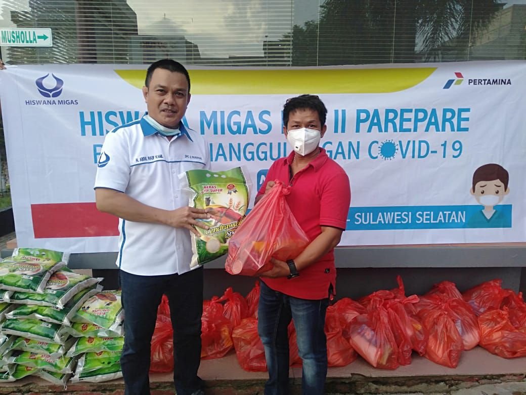 Kepedulian Hiswana Migas DPC II Parepare, sebagaimana aksi sosialnya di Kabupaten Wajo, Rabu (22/4/2020), tidak hanya menyerahkan sembako, juga masker, obat-obatan, dan minuman botol mineral di perbatasan wilayah Kabupaten Wajo.
