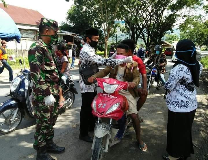 PGRI Sabsel Peduli Corona: Bagikan Tempat Cuci Tangan - Masker ke Pengendara di Batas Kabupaten Luwu-Lutra