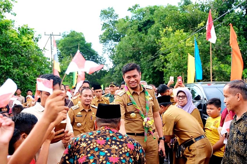 Bupati Gowa Adnan Purichta Ichsan didampingi Wakil Bupati Gowa Abd. Rauf Malaganni menyerahkan sejumlah alat-alat pertanian kepada Gabung Kelompok Tani (Gapoktan) di sela-sela kunjungan kerja (Kunker) di Lapangan Kantor Desa Pattallassang, Kecamata Pattallassang.