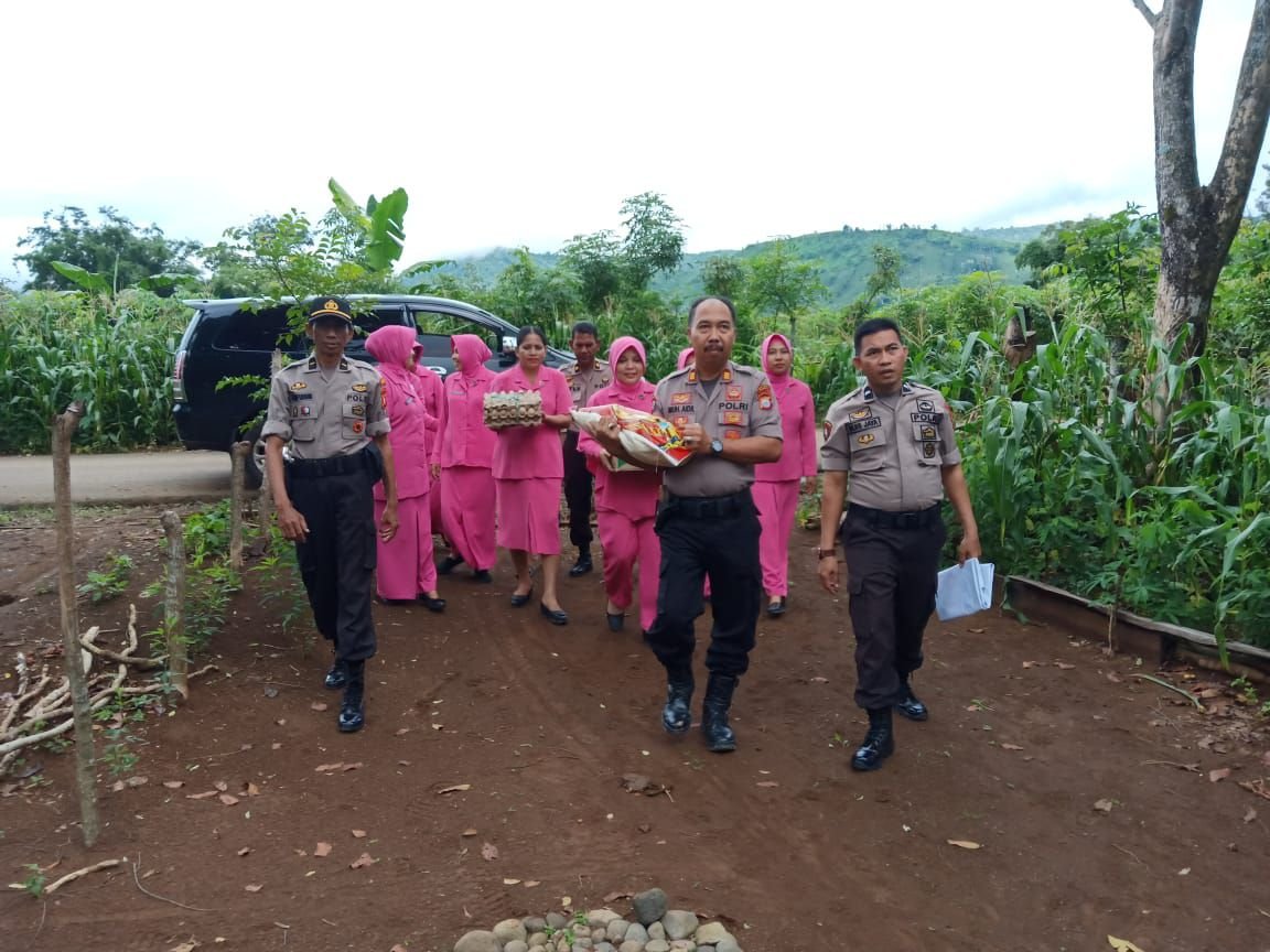 Wujud kepedulian terhadap warga yang kurang mampu, Bhayangkari Ranting Polsek Biringbulu Polres Gowa memberikan tali asih dengan memberikan bantuan paket sembako kepada warga kurang mampu di Dusun Bulosibatang, Desa Julukanayya, Kecamatan Biringbulu, Kabupaten Gowa, Senin (17/2/2020)