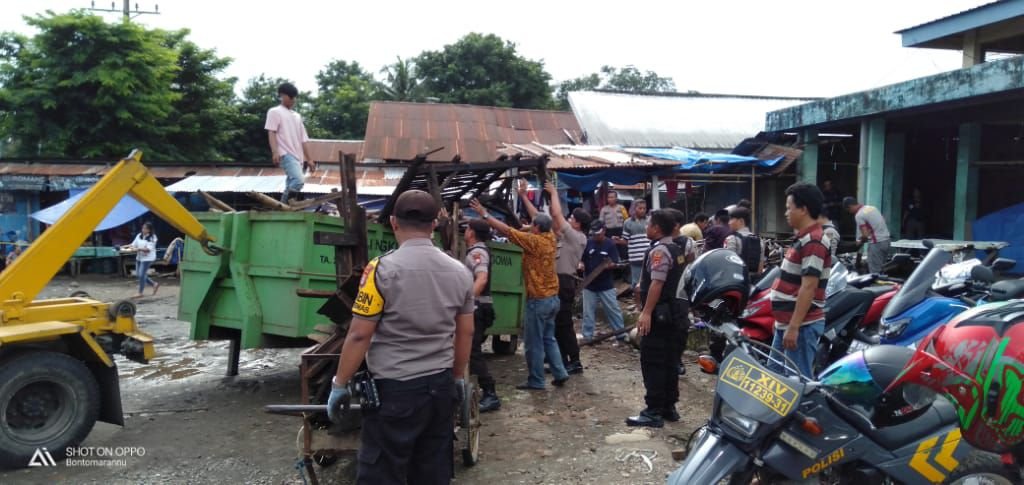 Kapolres Gowa bersama anggotanya membersihkan tumpukan sampah tersebut. Bersama puluhan personel Unit 1 Turjawali Sabhara, bahu-membahu membersihkan halaman pasar.
