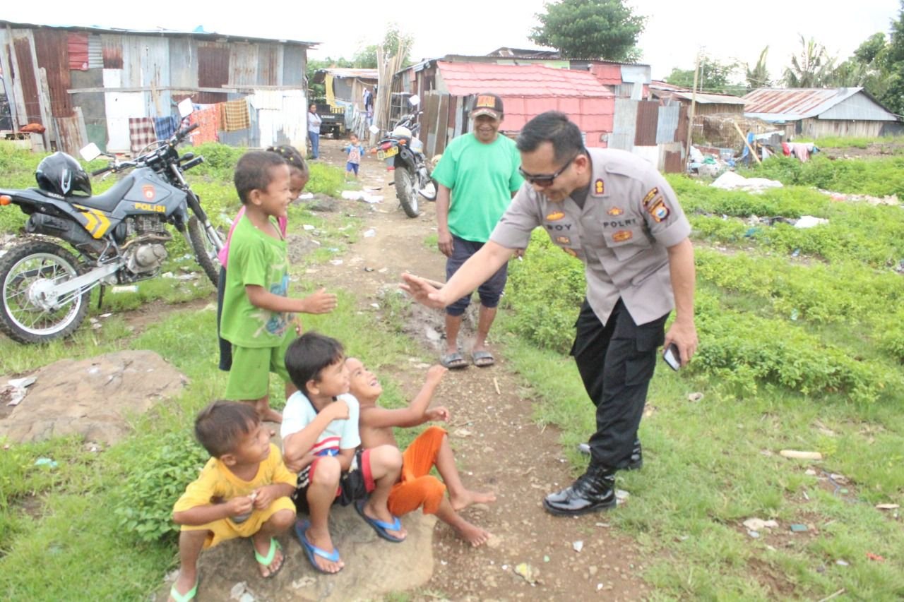Dengan sontak, sosok orang nomor satu di Polres Gowa itu langsung menyapa dan mangajak bercengkrama anak-anak yang sedang bermain di pemukiman warga.